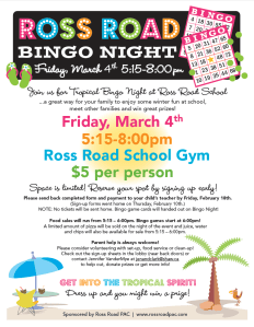Not long now until “Tropical” Bingo Night! March 4th is coming up, so make sure you get your order forms and cheques in to secure your family’s bingo game cards on the big night!