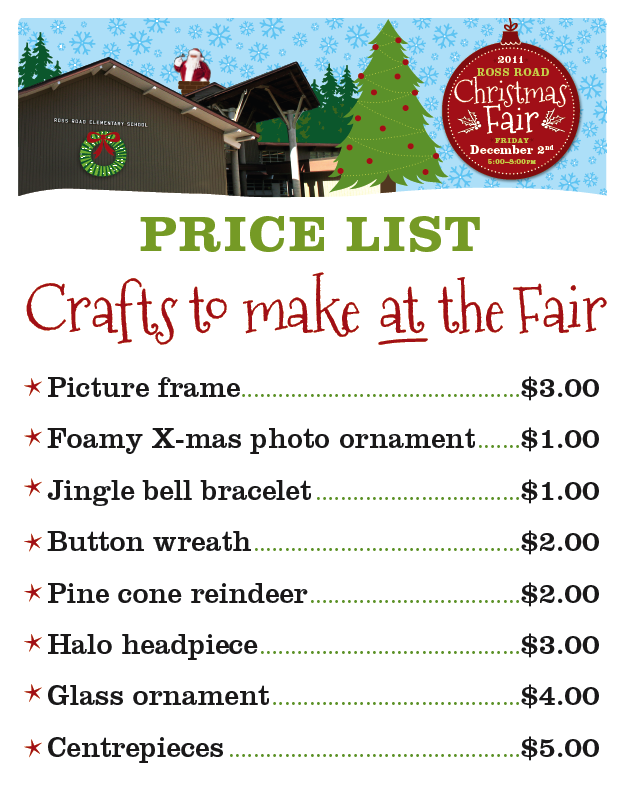 Price List: Crafts to make at the Fair